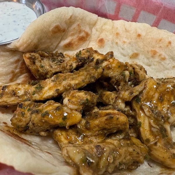 We HAND MAKE our own pita bread then stuff it with juicy chicken roasted in olive oil and our own Greek seasoning blend. Served with sides of house made tzatziki sauce, feta cheese, and orzo pasta in lemon garlic butter. Opa!